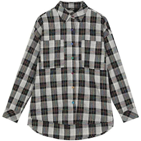 Plaid British Single Breasted Casual Shirt Women,Spring Vintage Full Sleeve,Korean Ladeis Basic Daily Chic Top
